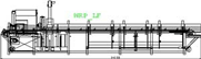 Základní rám stabilní konstrukce z ocelových profilů, délka posuvu 14,00 m, maximální zatížení kulatinou 2,5 t, 2 podávací řetězy, pevnost řetězů 160.000 N, vzdálenost unášečů 625 mm, šířka unášečů 930 mm, ocelové unášeče s umělohmotnými kluznými lištami, rychlost posuvu max. 35 m/min při 50 Hz (frekvenční řízení).