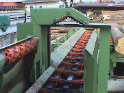 Reduktor kořenových náběhů Typ WRP – LF integrovaný do podélného podavače, pro kmeny o délce 3,40 – 12,00 m a průměru od 0,25 – 0,80 m.