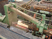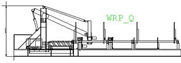 Reduktor kořenových náběhů Typ WRP-Q určený k montáži do příčného dopravníku, s vespod umístěnou frézovací hřídelí a horním přítlačným ramenem pro kmeny o délce 3,2 – 7,0 m a středovém průměru od 0,20 – 0,70 m.