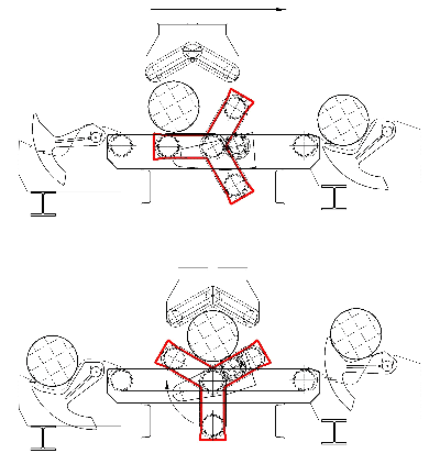 Třídílné hvězdicové prizma, složené ze dvou řetězových prizmat a 2 pomocných prizmat pro posouvání resp. Otáčení kmenů během redukování. Pohon otáčení pomocí motoru 7,5 kW s plochou převodovkou a frekvenčním řízením.
