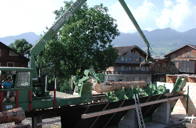 (pro průměr kmene od 200 – 1200 mm a délku kmene od 2,00 – 8,00 m ; odkorňovací zařízení je namontováno na třídícím a rozvážecím vozíku)